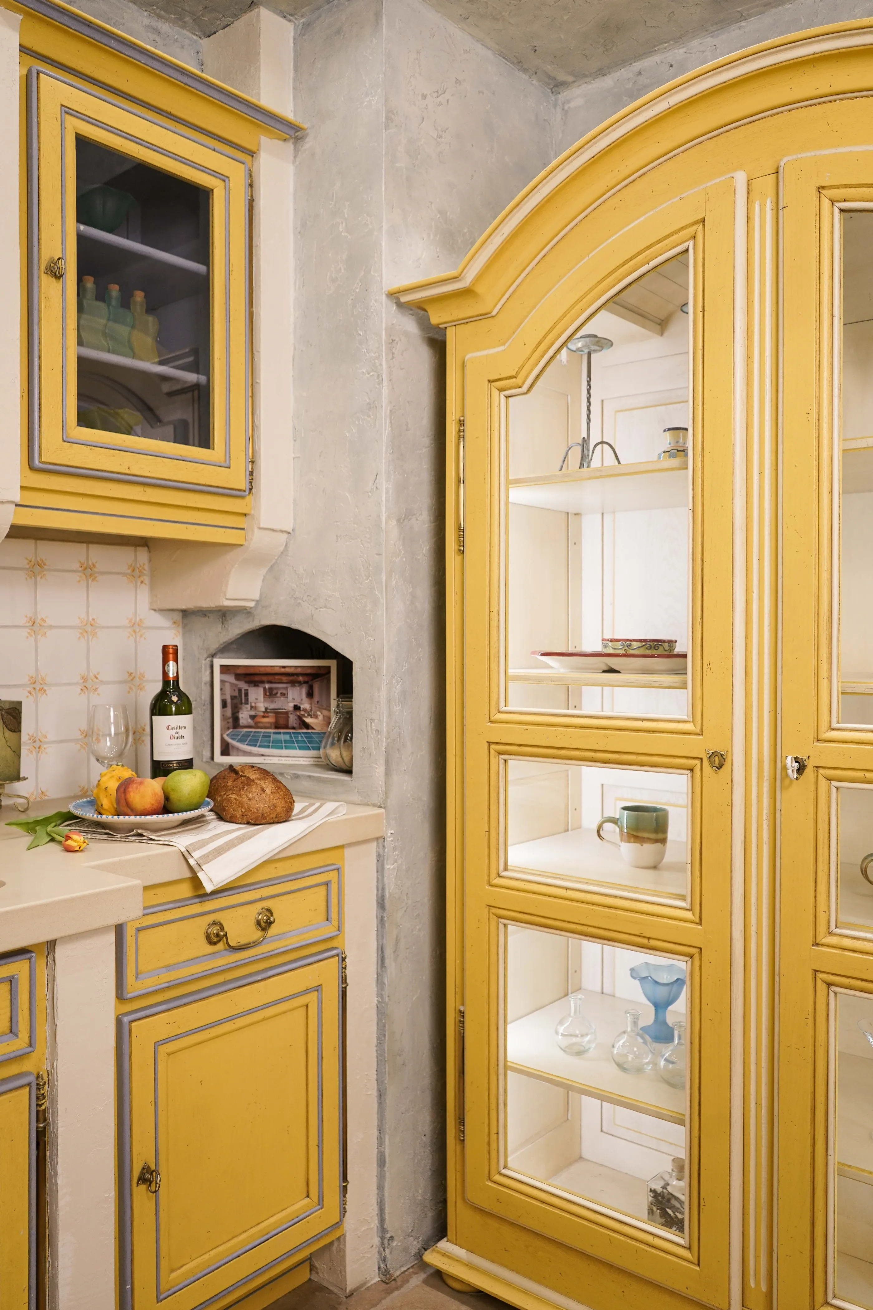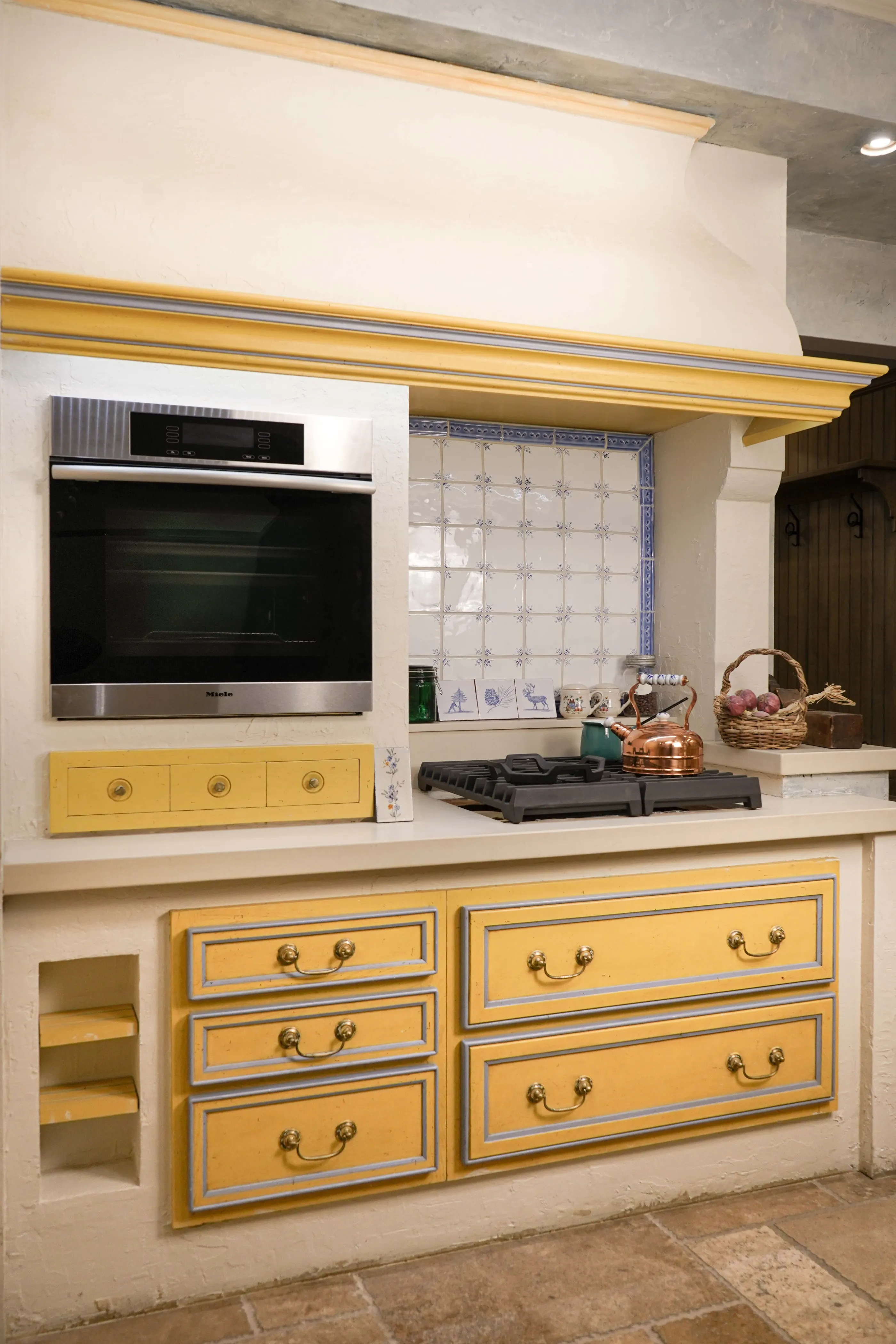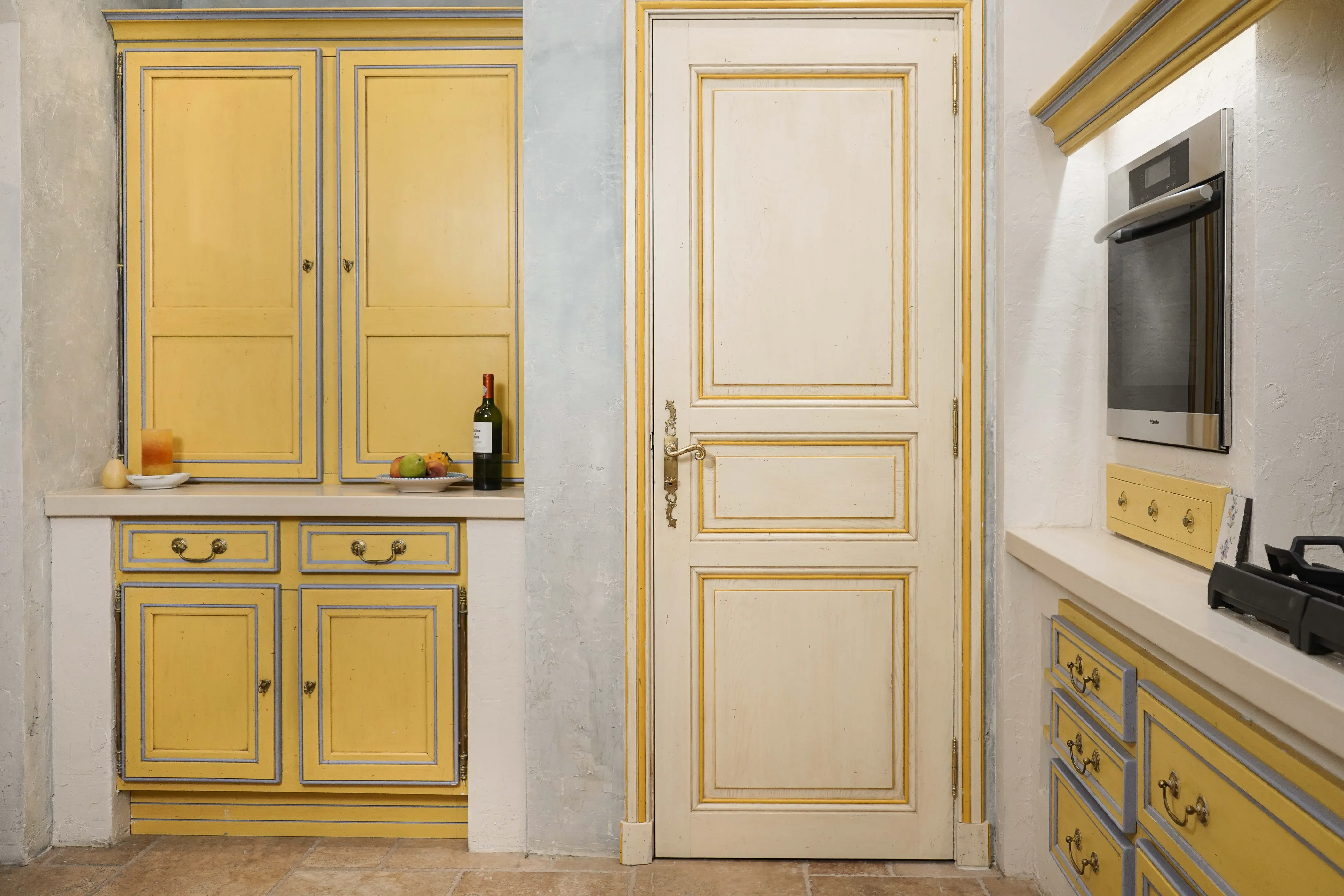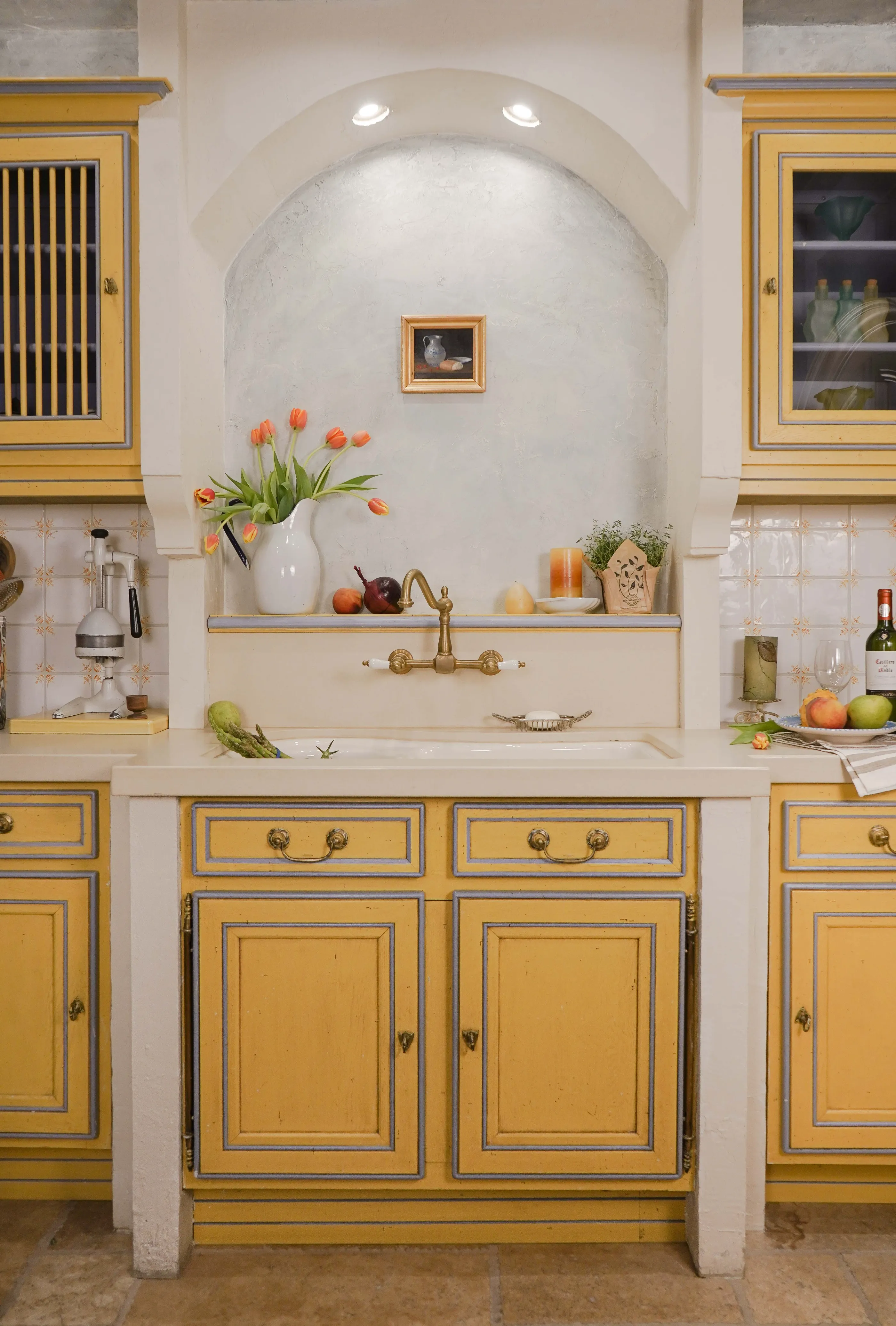 Attention to detail The kitchen features thoughtful design elements, such as vintage-inspired hardware, hand-painted tiles, and unique plaster finishes that add character and charm.
