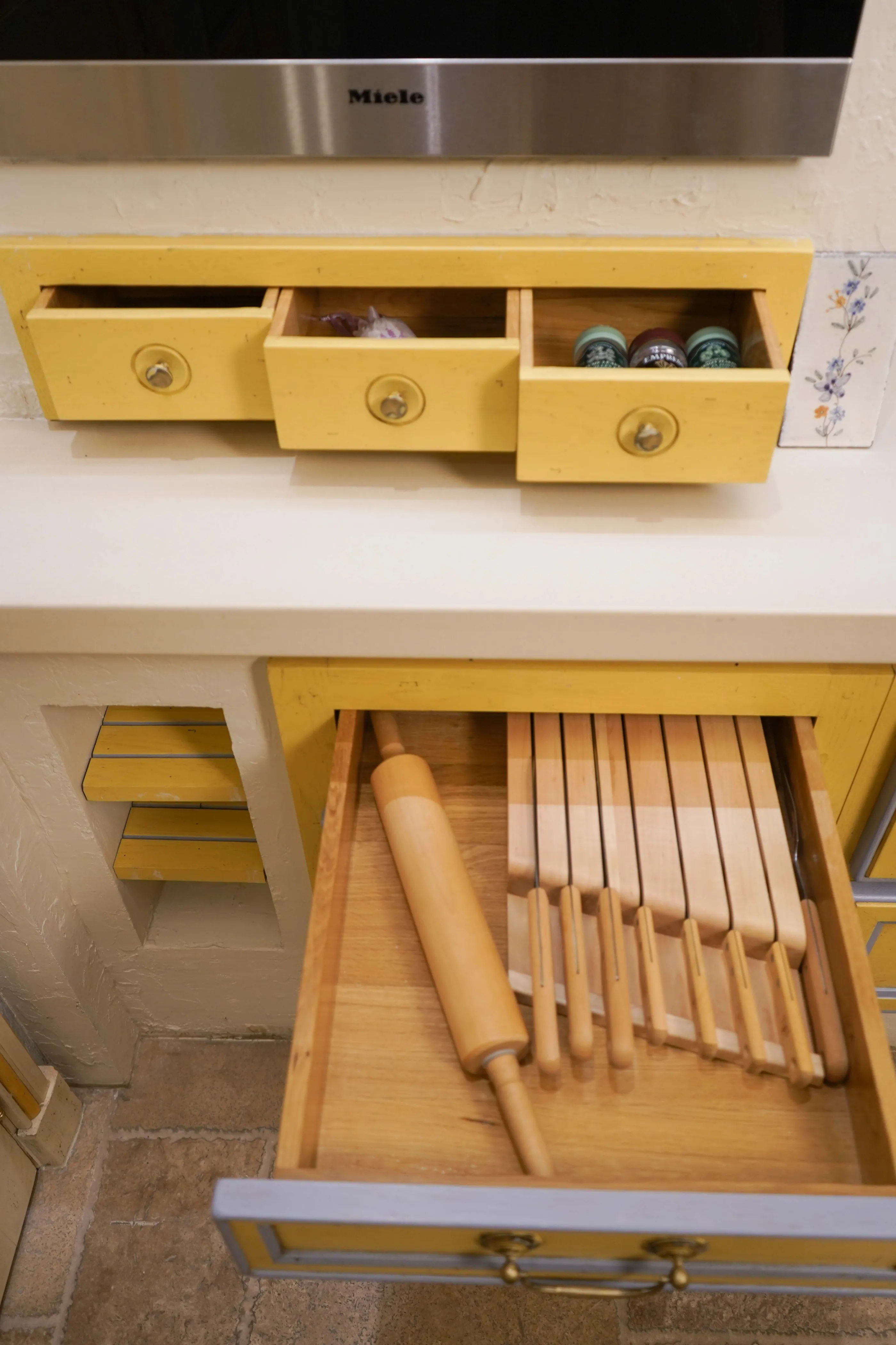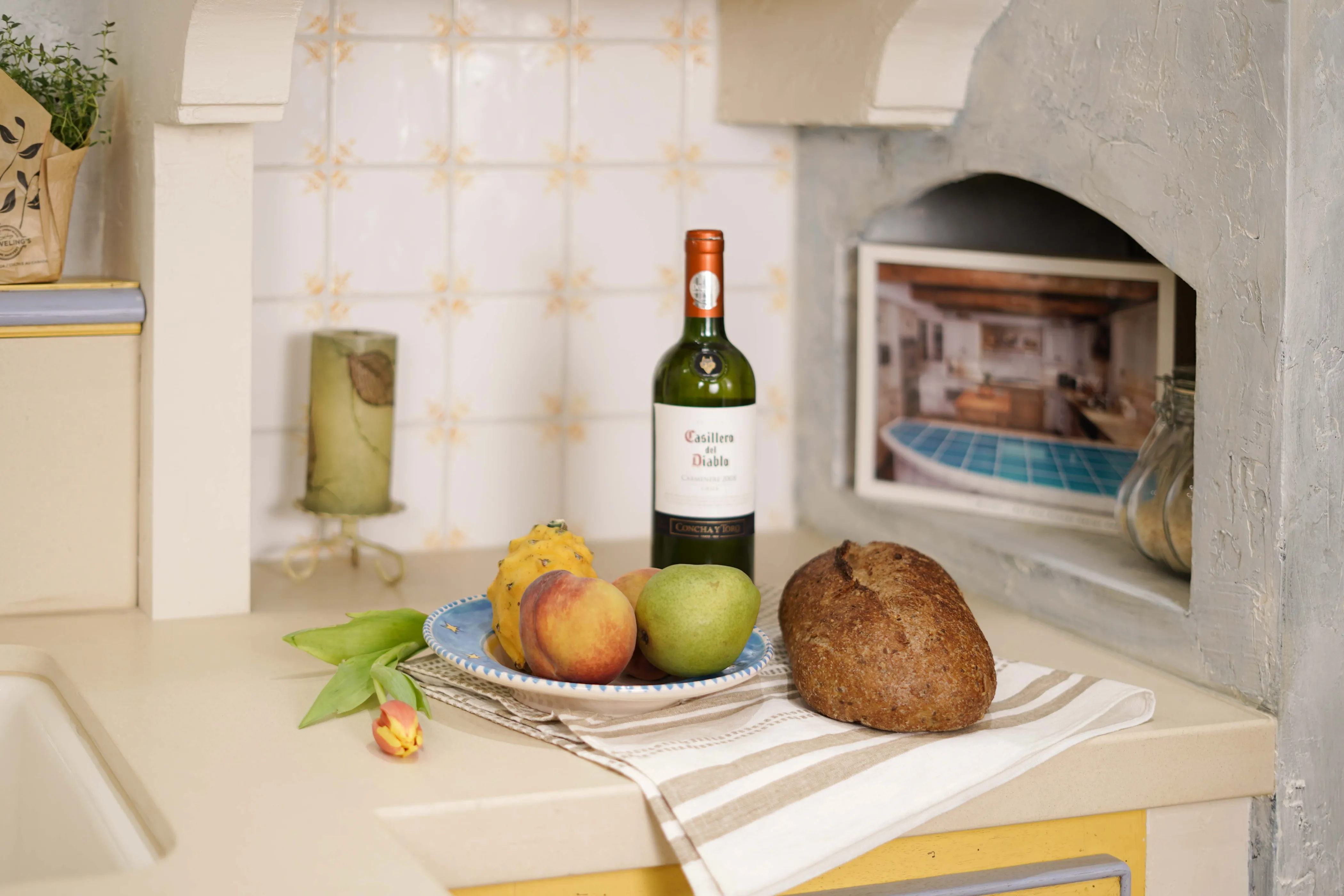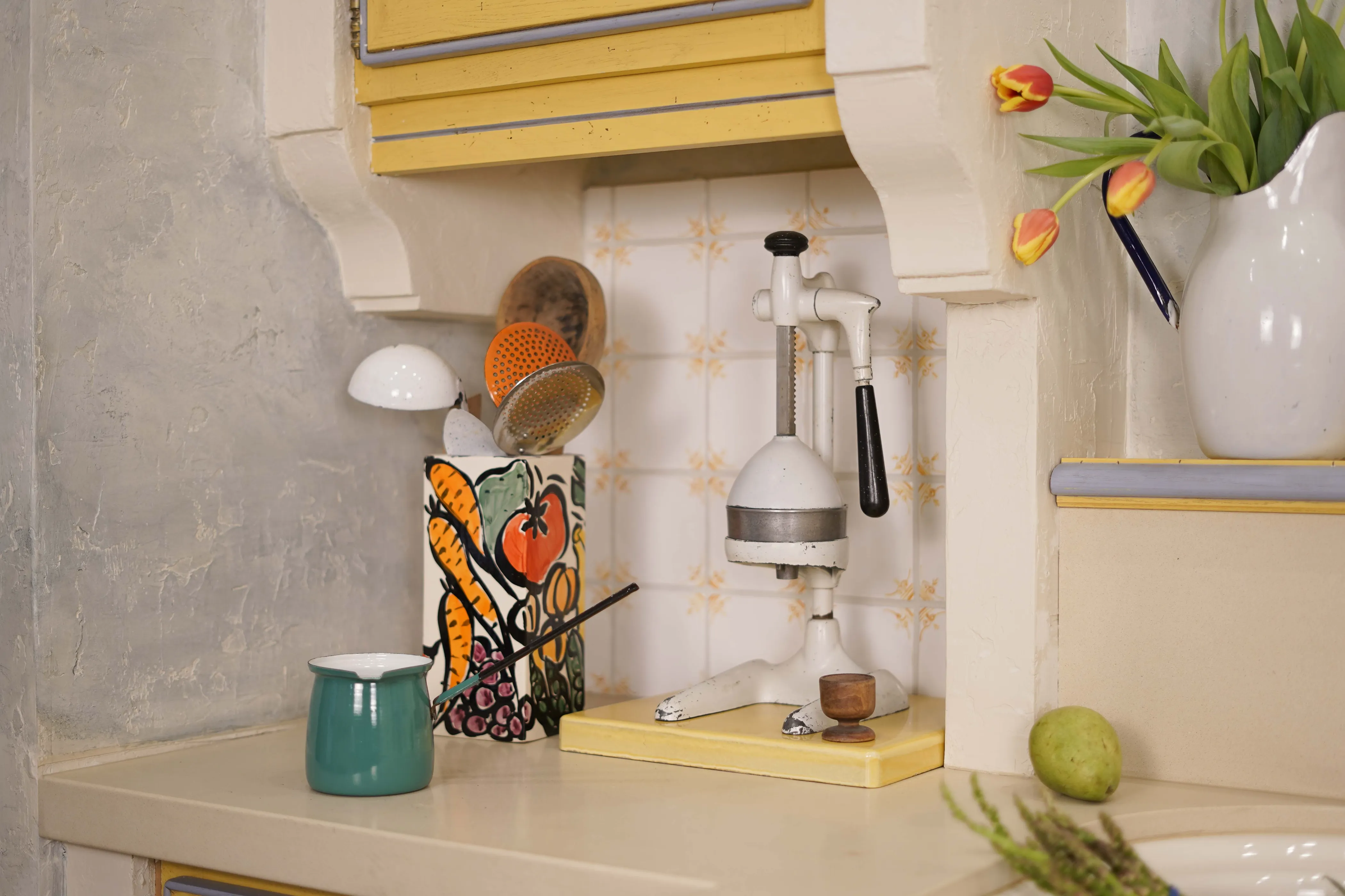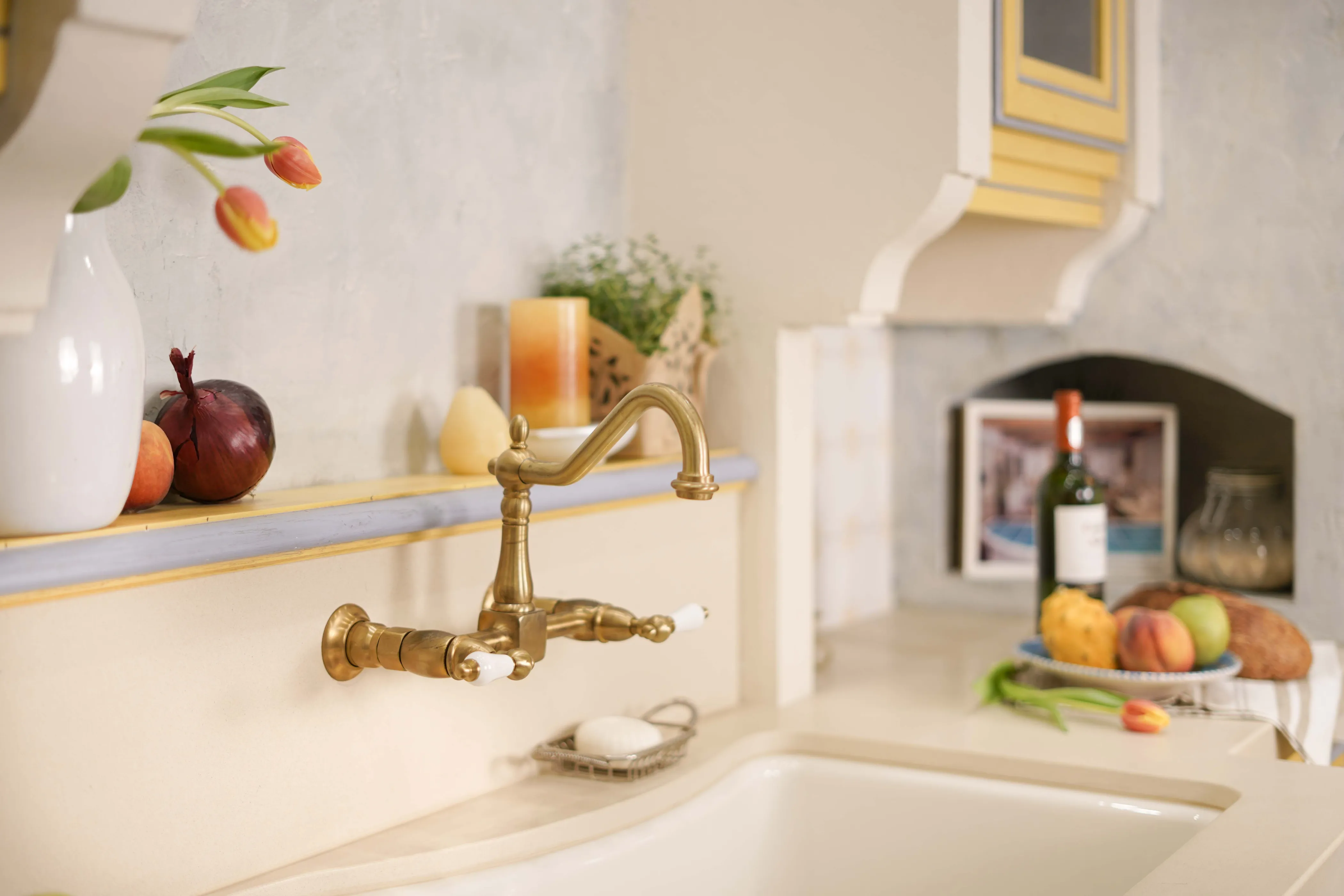 Attention to detail The kitchen features thoughtful design elements, such as vintage-inspired hardware, hand-painted tiles, and unique plaster finishes that add character and charm.